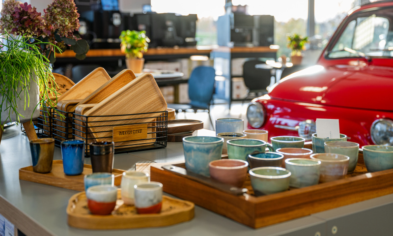 Prostor je uvolněný, neformální a máte možnost si všechno projít vlastním tempem. Ideální kombinace pro ty, kdo si chtějí nejdřív kávu užít, a pak se rozhodnout.