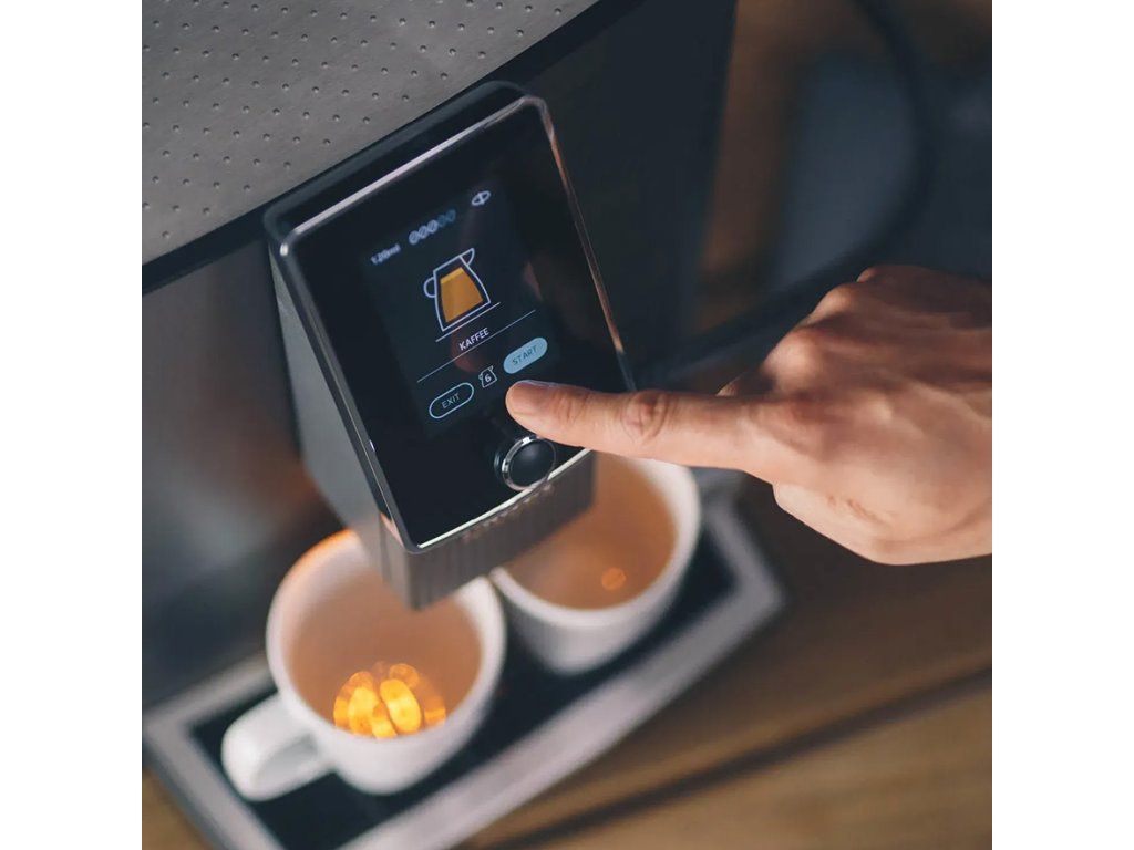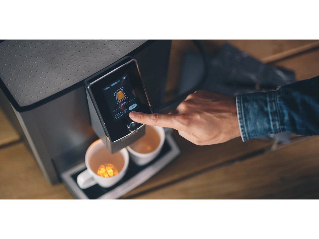 Ovládání je přehledné a rychlé díky dotykovému displeji nebo mobilní aplikaci, přes kterou můžete recepty upravovat i ukládat. V provozu tak kávovar nezdržuje, ale přirozeně zapadne do denní rutiny.